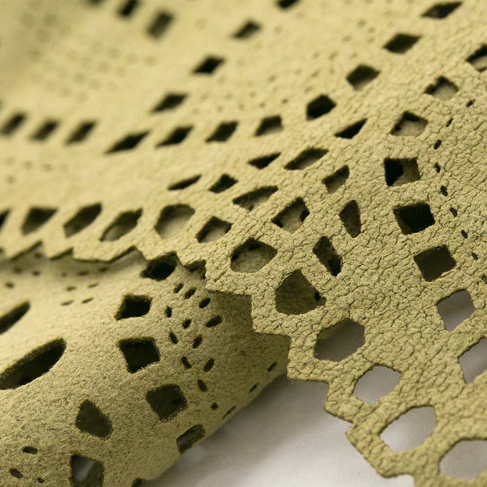 テクニック:レーザーカットワーク【素材:スエード調合皮(神戸レザークロス社:フレッシュシルキー)】